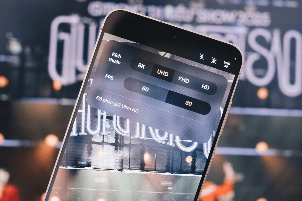 • Galaxy S25 FE hỗ trợ quay video lên đến 8K, mang lại độ sắc nét cực cao. Tuy nhiên, để cân bằng giữa chất lượng và dung lượng, tùy chọn 4K cũng đủ mượt mà để bắt trọn chuyển động sân khấu và dễ dàng chia sẻ, chỉnh sửa.