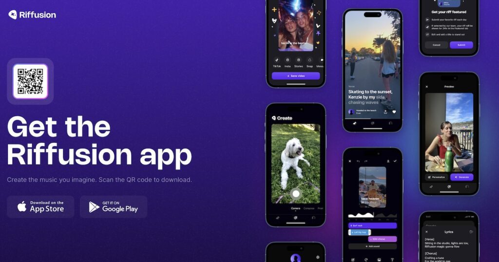 Riffusion sử dụng mô hình FUZZ – tương tự Stable Diffusion – để biến văn bản thành sóng âm, từ đó tạo ra nhạc thực nghiệm, ambient hoặc glitch. Bạn có thể mô tả “Synthwave 80s, không lời, có tiếng mưa và xe chạy” và nhận kết quả độc lạ, mang tính nghệ thuật cao.