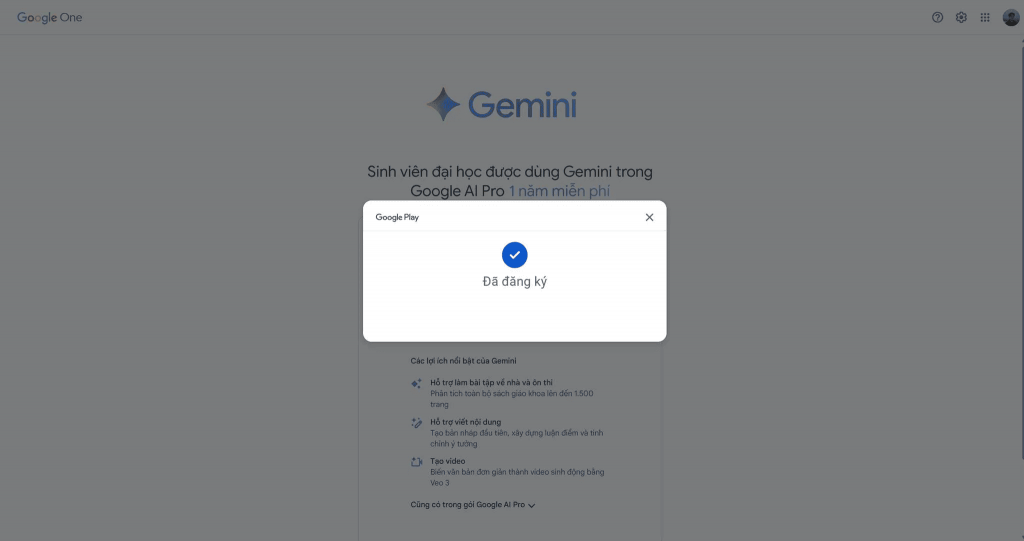 Thực hiện thao tác này ngay sau khi đăng ký thành công để yên tâm sử dụng gói Google AI Pro miễn phí: